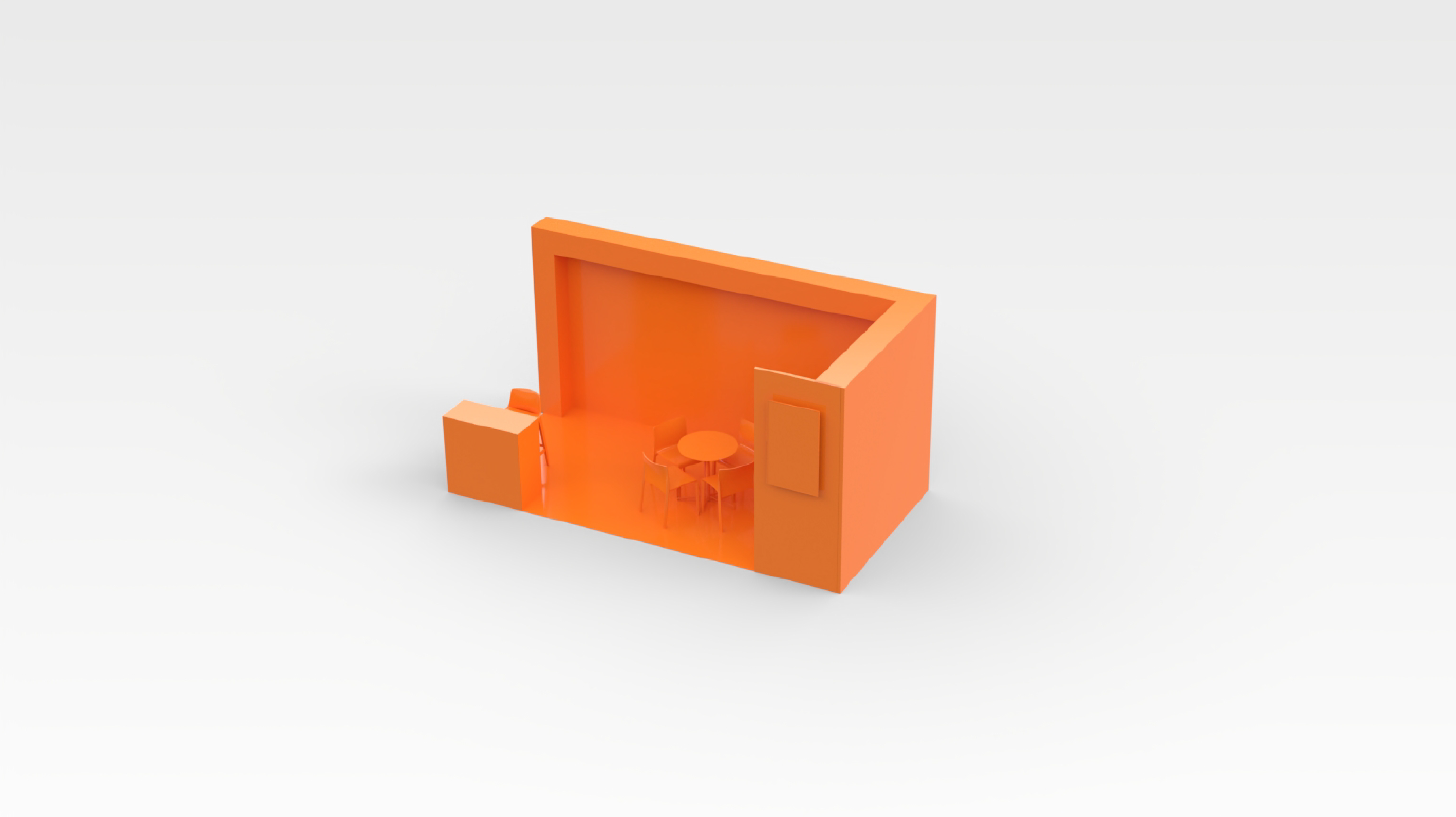 Questo stand, dalle dimensioni di 500 cm di larghezza, 200 cm di lunghezza e 250 cm di altezza, è stato progettato e realizzato con una struttura in pannelli MDF e travi dotate di faretti incassati.
